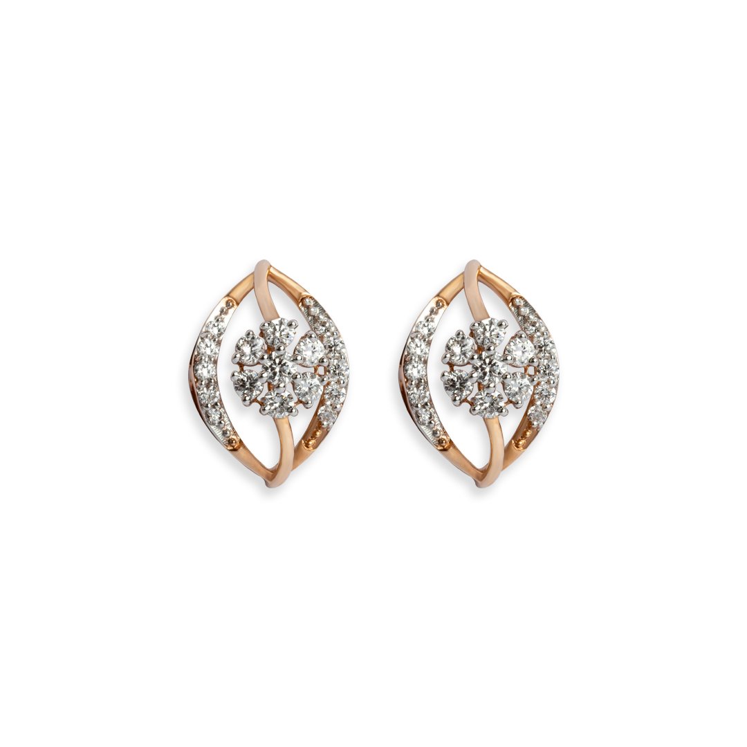 • Design: Almond-shaped gold earrings with small diamond flower accents