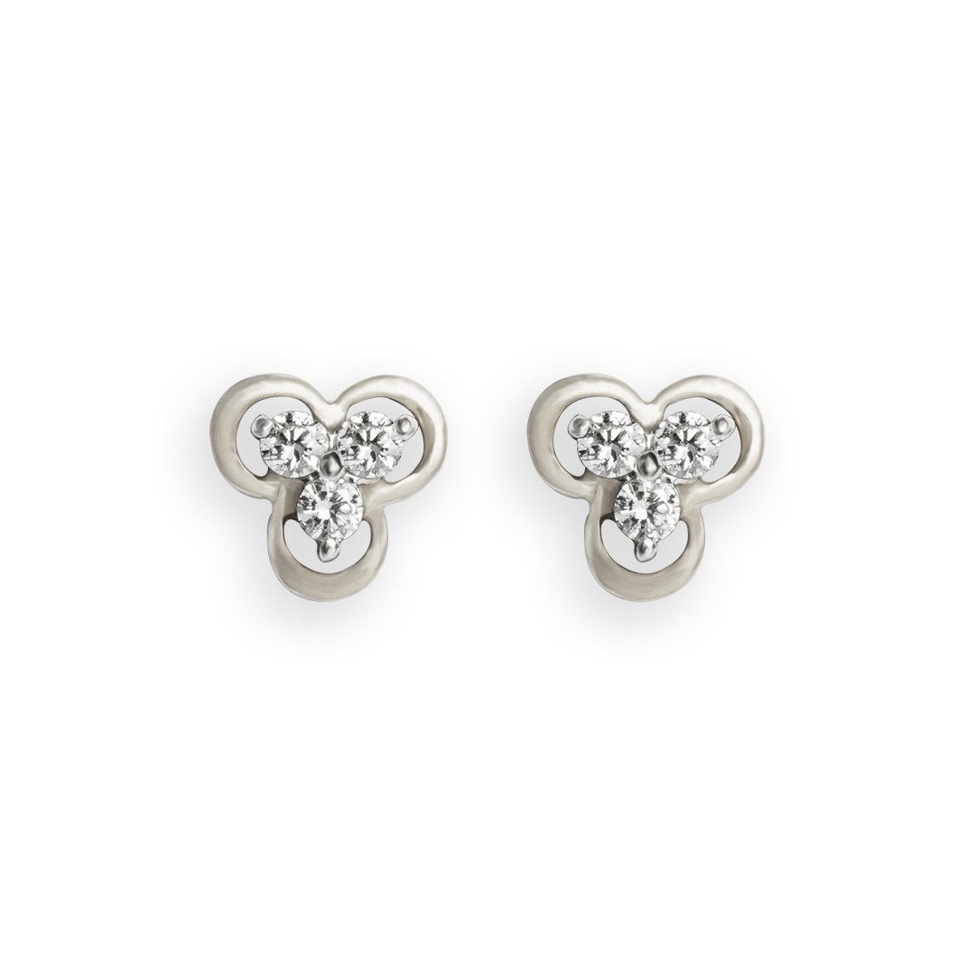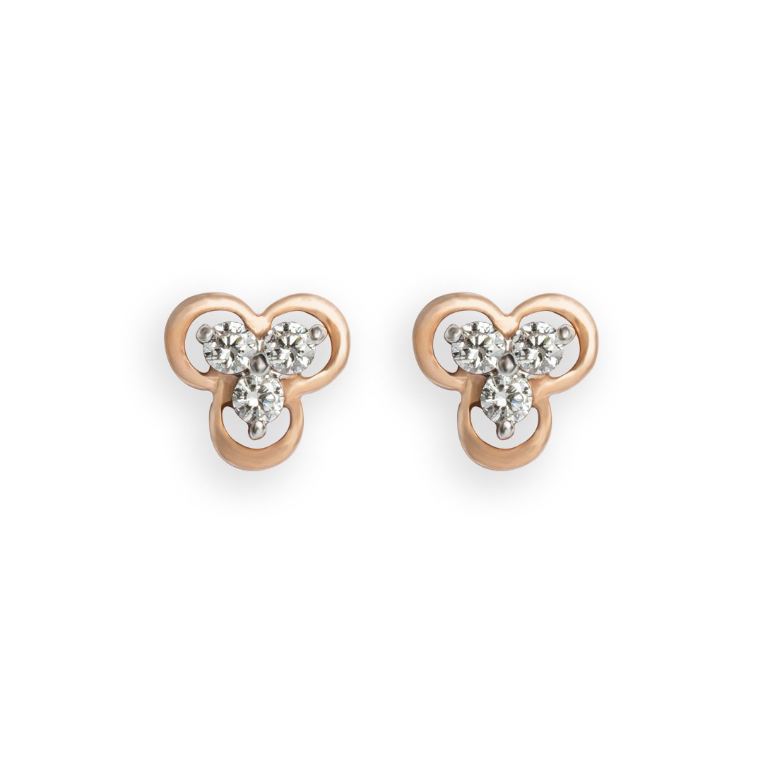 These stunning floral-shaped earrings feature three brilliant diamonds, each carefully set to capture light from every angle. The intricate design evokes the beauty of a delicate flower in full bloom, with the diamonds nestled at the center, enhancing their natural sparkle. Crafted from high-quality metal, these earrings add a touch of elegance and sophistication to any outfit. Perfect for special occasions or everyday wear, they bring timeless beauty and a subtle, refined shine to your look.
