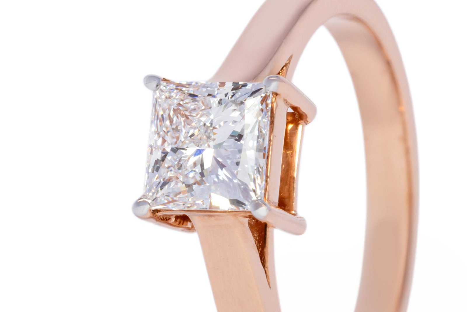 Celebrate love sustainably with our Eco-Friendly Rose Gold Engagement Ring, a perfect blend of elegance and ethical craftsmanship. This stunning ring features a lab-grown princess-cut diamond, offering the same brilliance as a mined diamond but with a lower environmental impact.