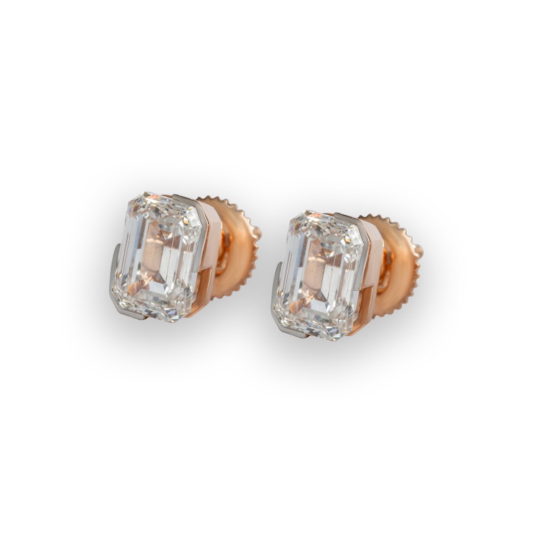 A timeless expression of elegance, these emerald-cut diamond stud earrings radiate sophistication. Set in exquisite rose gold, the sleek step-cut facets of each diamond reflect light beautifully, creating a mesmerizing sparkle with every movement.